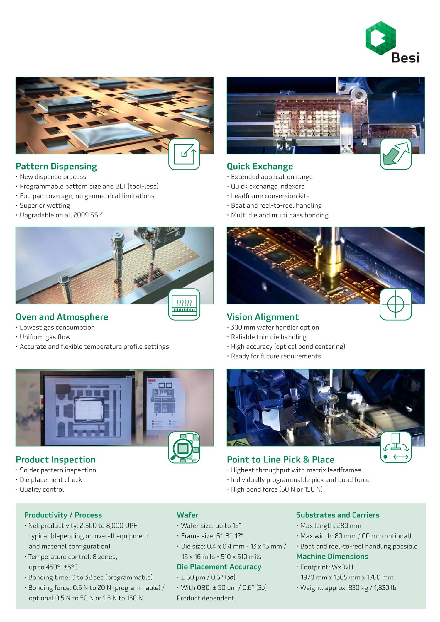 • Typical bonding accuracy (product dependent) : 60µm @ 3σ, with optical bond centering option: 50µm @ 3σ